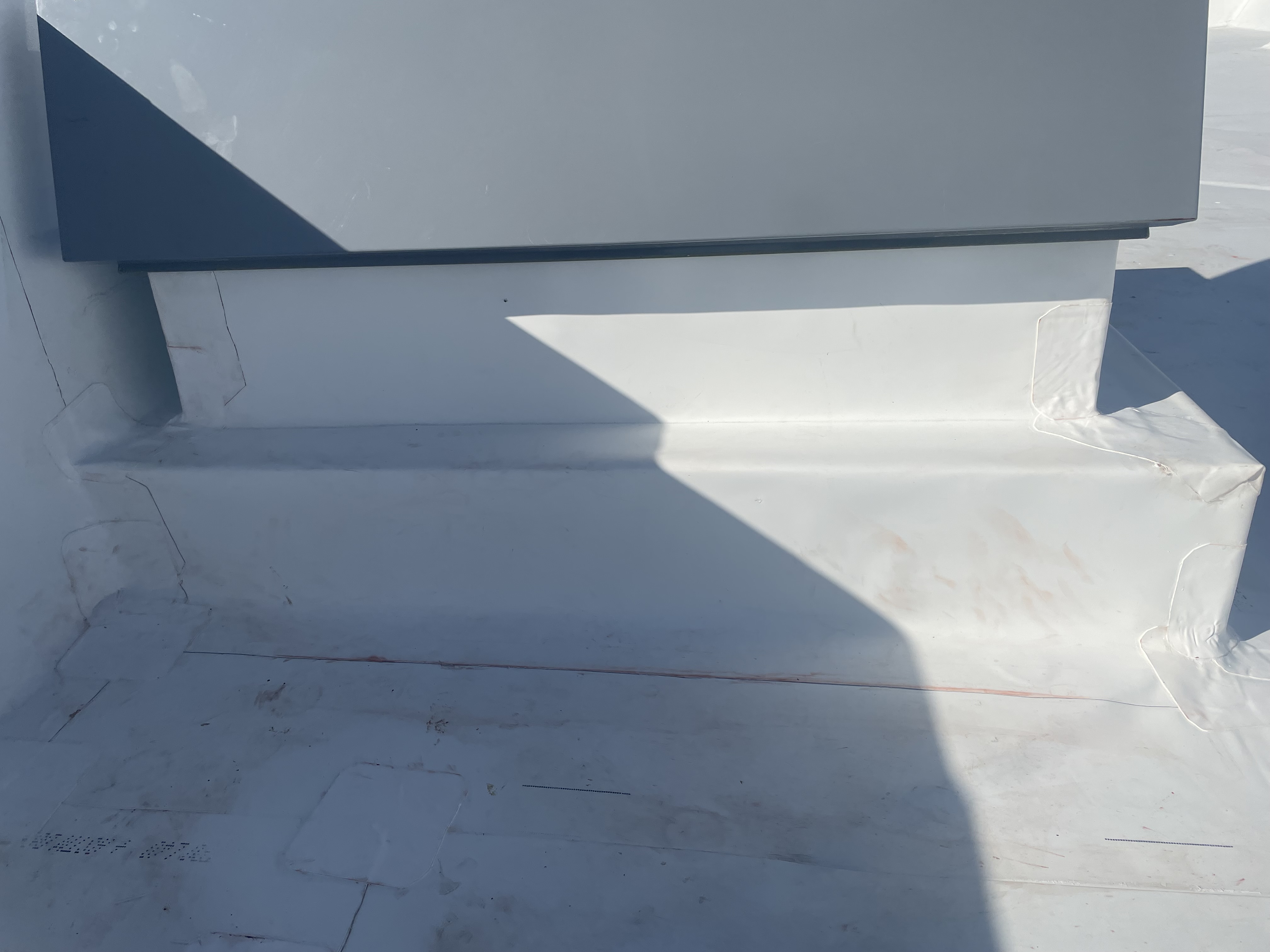 Existing roof removed down to structural deck. Deck inspected and soft spots repaired. ISO insulation boards installed mechanically. TPO membrane rolled out, mechanically fastened at field, fully adhered at edges and penetrations. All seams heat-welded to minimum 1.5" weld width. HVAC curbs wrapped and flashed. Drains cleaned and fitted with new clamping rings.